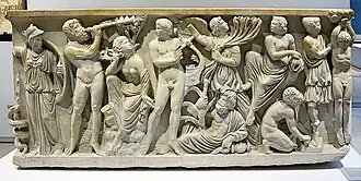When a genealogy was applied to him, Marsyas was the son of the "divine" Hyagnis.[5][6] His father was called Oeagrus[7] or Olympus.[8] Alternatively, the latter was said to be Marsyas' son and/or pupil and eromenos.[9][10][11]