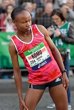 Martha Komu (born March 23, 1983, in Gathanji, Laikipia District) is a Kenyan runner who specialises in a marathon. She won the Paris Marathon in 2008 and finished fifth at the 2008 Summer Olympics.