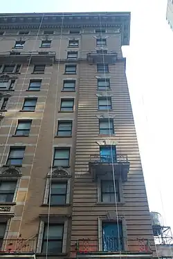 According to the 1910 United States census, residents were generally well-off with a median age of between 45 and 50.[31] Edgar operated the hotel until his death in 1911,[95] and George C. Brown operated the hotel for the next decade.[96] By then, more New Yorkers had come to understand the concept of a women's hotel.[7] The Martha Washington switched to a staff of all-female elevator operators in 1917.[31] A group of investors offered $800,000 for the Martha Washington in January 1920,[97] and William and Julius Manger of the Bell Apartment Hotel Company bought the hotel the same month.[98][99] The Northern Hotel Company held a long-term lease on the hotel at the time,[97][99] but the company subleased the hotel to the Mangers that March.[96][100] The Mangers jointly operated the Martha Washington until William's death in 1928, upon which William's share in the hotel was transferred to his brother and to a trust fund created for his relatives.[101][102]