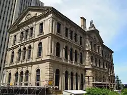 Mary's Point was a sandstone quarry[2] which in the nineteenth century produced brownish-grey and brownish-red dimension stone (termed Mary's Point Grey and Mary's Point Red, respectively.[8]) used throughout eastern North America as far away as Philadelphia and New York (the Bethesda Terrace in Central Park is an example using Mary's Point stone). The Mary's Point quarry yielded about 4,000 tons of stone annually, valued for its durability and workability. Geologically, the bedrock is a continuation of Grindstone Island, situated nearby to the east in Shepody Bay.[8]: p 44–47 An important associate of the quarry, at one time called the Albert Freestone Company, was George Lang, a builder responsible for several notable Halifax structures using Mary's Point stone. The quarry was opened for the last time in 1987 to provide stone used in the restoration of the former Dominion Building in Halifax, now the Art Gallery of Nova Scotia.[9] In Halifax St. Mary's stone was also used on the Welsford-Parker Monument (1857), the Halifax Court House (1858-63), and The Halifax Club (1862).[8]: p 72