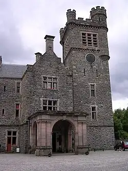 The castle was built outside the family's lands near Dunrobin Castle in Scotland. It was designed with a clock tower that had just three faces. The fourth face had no clock as it faced the family's lands, and it was said that Mary Caroline did not wish to "give them the time of day." The house was lavishly furnished, and Mary Caroline bought paintings and sculptures, including Andromeda by Pasquale Romanelli.[1]