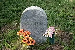 Isaac Surratt also returned to the United States and lived in Baltimore.[217] He died unmarried in 1907.[215][220] Isaac and Anna were buried on either side of their mother in Mount Olivet Cemetery.[217] John Jr. was buried in Baltimore in 1916.[217] In 1968, a new headstone with a brass plaque replaced the old, defaced headstone over Mary Surratt's grave.[221]