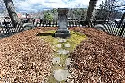 Lyon died of erysipelas (possibly contracted from an ill student in her care)[1] on March 5, 1849. Lyon was buried on the Mount Holyoke College campus, in front of Porter Hall and behind the Amphitheatre.[22] Her burial site is marked with a granite pillar and surrounded by an iron fence.[22]