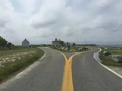MD 5 begins within Point Lookout State Park in St. Mary's County by heading west on Point Lookout Road, a two-lane undivided road which continues south from the route’s southern terminus along the shoreline of the Chesapeake Bay to the confluence with the Potomac River. The route turns north, passing a fee booth for the park at the entrance before continuing into wooded areas. A short distance later, the road makes a left turn and heads northwest through a mix of woodland and farmland.[1][2] MD 5 passes through Scotland and continues north through more agricultural areas with intermittent residences.[2] It reaches Ridge, where MD 5 intersects the southern terminus of MD 235 (Three Notch Road).[1][2] From here, the road heads into more wooded areas. MD 5 passes through agricultural and residential areas before turning northwest and entering St. Mary's City. Here, the route makes a turn to the north, with MD 584 looping to the west of the route through the center of St. Mary's City.[1][2] The road runs along the shore of the St. Marys River and passes near St. Mary's College of Maryland before leaving St. Mary's City had heading into forested areas. It reaches Park Hall, where MD 5 intersects MD 489 (Park Hall Road).[1][2]