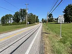 Maryland Route 316 (MD 316) is a state highway in the U.S. state of Maryland. Known as Appleton Road, the highway runs 2.67 miles (4.30 km) from MD 279 near Elkton north to MD 277 near Elk Mills in northeastern Cecil County. MD 316 was constructed in the early 1910s from Elkton to Elk Mills and in the early 1920s north of Elk Mills. In the early 1960s, the disjoint northern segment of the highway was transferred to the county and the highway's present southern terminus was established when MD 279 moved to a new alignment north of Elkton in the early 1960s.