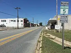 Maryland Route 5 Business (MD 5 Bus.) was a 0.96-mile (1.54 km) business route of MD 5 that looped through the central part of Leonardtown. The route headed west from MD 5 on Fenwick Street, a two-lane undivided road with a traffic count of 7,271 vehicles in 2007. It headed through wooded areas before it reached into the downtown area of Leonardtown.[44][45] Upon reaching the town center, MD 5 Bus. turned north onto Washington Street, which followed a one-way pair with two lanes in each direction. The road turned into a four-lane undivided road and continued through residential and commercial areas before intersecting MD 5 again.[45] Past here, the road becomes MD 245 (Hollywood Road).[1] The route was decommissioned in 2012 when it was transferred from the state to the town of Leonardtown.[46] Despite being decommissioned, some signs still remain for the route.[45]