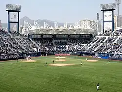 Masan Baseball Stadium is a baseball stadium in Changwon, South Korea. The stadium has an all-seated capacity of 11,000.[1] The KBO League club Lotte Giants played a handful of their home games in this stadium each season as their secondary stadium until 2010 (with the majority of their games being played at Sajik Baseball Stadium). Masan Baseball Stadium was the home stadium of the NC Dinos between 2012 and 2018, when they moved to the newly built Changwon Baseball Stadium.