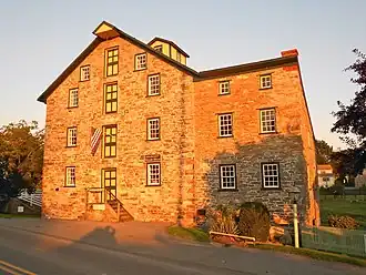 This complex consists of the mill, a miller's house, a summer kitchen, and a frame barn. The original section of the mill was built in 1737. The machinery was installed in 1906. It is a three-story, L-shaped, stone building with a gable roof and cupola. The house was built in 1855, and is a two-story, gable-roofed, brick banked building. The summer kitchen that is adjacent to the house is a one-story, brick structure. The small frame barn dates to the late-nineteenth century. It is the oldest continuously operating grist mill in Lancaster County.[2]