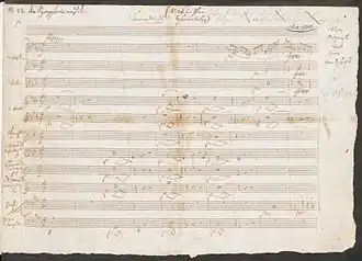 Masonic music has been defined as "music used in connection with the ritual and social functions of freemasonry."[1] Two major types of music used in masonic lodges are lodge songs, played to keyboard accompaniment before or after meetings, or during meals; and music written to accompany specific masonic ceremonies and events. Because the number 3 and the letter 'B' are of particular significance to freemasonry, music written in the keys of C minor or E flat major, which both involve 3 flats, (whose symbol '♭' resembles the lowercase letter 'b'), in their key signatures has been considered especially appropriate for masonic ceremonial music.[2]