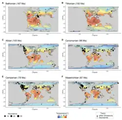 - ^ Chiarenza, Alfio Alessandro; Cantalapiedra, Juan L.; Jones, Lewis A.; Gamboa, Sara; Galván, Sofía; Farnsworth, Alexander J.; Valdes, Paul J.; Sotelo, Graciela; Varela, Sara (2024). "Early Jurassic origin of avian endothermy and thermophysiological diversity in dinosaurs". Current Biology. 34 (11): 2517–2527.e4. Bibcode:2024CBio...34.2517C. doi:10.1016/j.cub.2024.04.051. PMID 38754424.