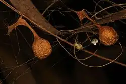 Mastophora, also known as bolas spiders,[2] is a genus of orb-weaver spiders first described by E. L. Holmberg in 1876.[3] They can be identified by a pair of lumps on the dorsal surface of the opisthosoma, though not all males will have these lumps.[2]