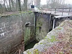 The superstructure of the upper lock at Leśniewo features a recess for the Reichsadler of the coat of arms of the Third Reich.[24]