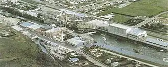 Due to intensive development and expansion throughout its history, the plant extends for some distance along the bank of the river, sandwiched between it and State Highway 1.