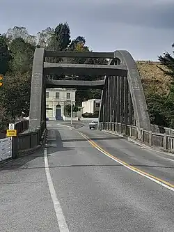 By the 1930s the narrowness of the bridge which restricted travel to one direction at a time and its light construction had become inadequate for the increasing traffic and heavy loads. As a result, a new bridge was constructed by the Ministry of Works immediately upstream of the suspension bridge (which was subsequently demolished) and opened in July 1939 by Bob Semple, the Minister of Works. It was a single span bow-arch reinforced concrete 53.8 metres (176 ft 6 inches) in length.[12]