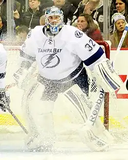 Mathieu Carol Garon (French pronunciation: [matjø ɡaʁɔ̃]; born January 9, 1978) is a Canadian former professional ice hockey goaltender. He played in the National Hockey League (NHL) for the Los Angeles Kings, Edmonton Oilers, Montreal Canadiens, Pittsburgh Penguins, Columbus Blue Jackets, and Tampa Bay Lightning between 2000 and 2013.