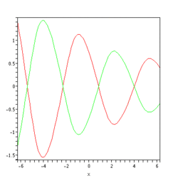 An example from Floquet's theorem, with , , (real part, red; imaginary part, green)