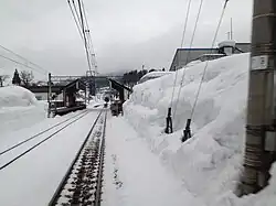 Matsudai Station (まつだい駅, Matsudai-eki) is a railway station located in the city of Tōkamachi, Niigata, Japan, operated by the third sector Hokuetsu Express. The station name is written in hiragana because when it was opened, there was already a Matsushiro Station (Japanese: 松代, same as the kanji form of Matsudai), which has since closed. Also, it is to appear friendlier to the local community.