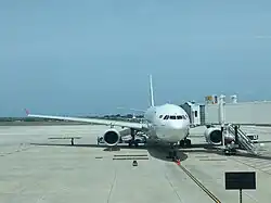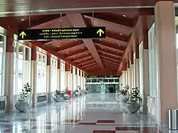 The passenger terminal covers 10,000 m2 (110,000 sq ft) and can handle 1 million passengers per year. It has 12 check-in counters and 2 gates equipped with jetways.[51] In addition, the terminal has a restaurant, medical centre, and a lounge for business class passengers.