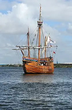 Lack of clear documentation has been a problem in studying the history of Matthew. Even its name has been questioned, with some authors suggesting that it was actually named Mattea after Cabot's wife.[3] Until the 1950s, all that was known about its size is that it was a small ship carrying about 18 men, but the discovery of a letter from a Bristol merchant named John Day written in 1497 saying that "in his voyage he had only one ship of fifty 'toneles' and twenty men and food for seven or eight months" provided more certainty about its size.[4] The age of the ship is also uncertain. The name Matthew does not appear in the 1492/3 customs accounts, so it was either fairly new or an older ship renamed or a foreign ship. It has been suggested that it probably was an ordinary Bristol merchant ship hired for the occasion. The name Matthew appears in documents in 1503/04 and 1510/11 but in a 1513 survey there is reference to a 'new Matthew' and references to this ship afterward leave out the 'new' suggesting that Cabot's Matthew no longer existed.[4]