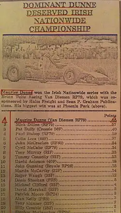 - ^ "Crossle Newsletter - Maurice Dunne in Van Dieman RF79 triumphs over Crossle in Championship" (PDF). Archived from the original (PDF) on 23 March 2013. Retrieved 27 July 2021.