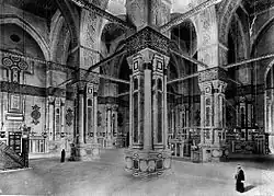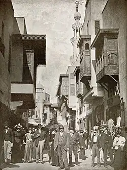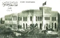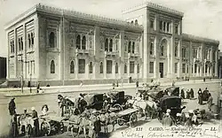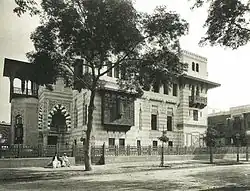 Herz was regarded as the foremost authority on this style, although he had not invented it.[33] (The expression "Arab style" above refers to this style.) In this style he erected the sumptuous palace of Count Zogheb, the consul of Denmark, in Qasr al-Nil Street; it was demolished in the 1960s.[34] In the same quarter stood a palace which its new owner, the tobacco manufacturer Nestor Gianaclis, decided to have remodelled in the neo-Mamluk style, entrusting the task to Max Herz in 1898. The beautifully remodelled neo-Mamluk palace was acquired by the newly founded American University in Cairo in 1919: it is still standing as one of the university's central buildings in Tahrir Square.[35]