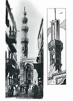 - ^ The low quality structure was added in 1397 or 1412. Doris Behrens-Abouseif: The minarets of Cairo. Islamic architecture from the Arab conquest to the end of the Ottoman Empire. With contributions by Nicholas Warner. Photographs by Bernard O'Kane. I.B. Tauris, London-New York, 2010, p. 205. ISBN 978 1 84885 539 7.