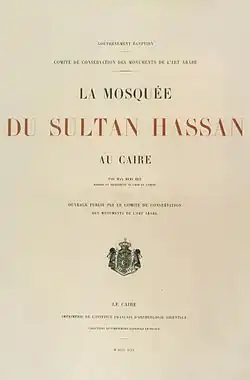 - ^ Philipp Speiser: Die Geschichte der Erhaltung arabischer Baudenkmäler in Ägypten. (Abhandlungen des Deutschen Archäologischen Instituts Kairo, Islamische Reihe, 8). Heidelberger Orientverlag, Heidelberg, 2001, pp. 113–138. ISBN 3-927552-27-5.