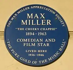 Thomas Henry Sargent (21 November 1894 – 7 May 1963), known professionally by his stage name Max Miller and billed as The Cheeky Chappie, was an English comedian often considered the greatest stand-up of his generation.[1] He came from humble beginnings and left school aged 12. At the outbreak of the First World War, he volunteered for the army. During his time in the forces, he started a troupe concert party. On leaving the army, he took up work as a light comedian, dancer and singer. He toured extensively, appearing in variety and revues, and by the early 1930s reached the top of the bill in the large music halls, including the London Palladium.