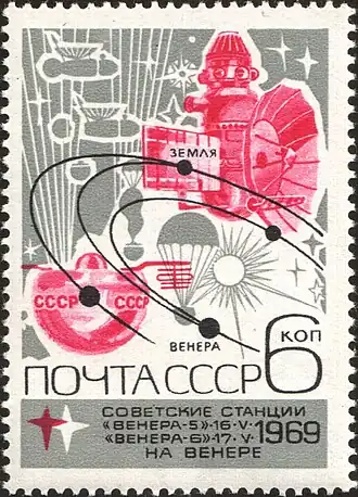 - Venera 5, a Soviet Union space probe launched on January 5, landed on Venus but ceased transmitting data back to Earth after 43 minutes of its descent through the Venusian atmosphere.[53] It entered the atmosphere of Venus at 6:01 UTC and ceased transmission a 6:44 UTC.[54]