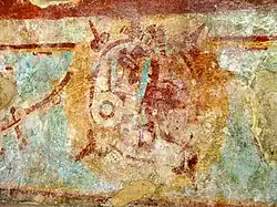 - murals in structure Q.80 show reptile iconography which has been interpreted as participation in Mixteca-Puebla traditions. The dentition of the reptile indicate that they are serpents. There are similar representations found at Coba and on some pottery in Cholula dated to circa 1350–1550 AD.