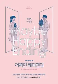 Maybe Happy Ending (Korean: 어쩌면 해피엔딩; RR: Eojjeomyeon haepiending) is a South Korean musical with lyrics written by Hue Park, music composed by Will Aronson, and book written by both Park and Aronson.[1] The musical, which is performed without intermission, follows two life-like helper-bots, Oliver and Claire, who discover each other in Seoul later in the 21st century and develop a connection that challenges what they believe is possible for themselves, exploring relationships, love and mortality.