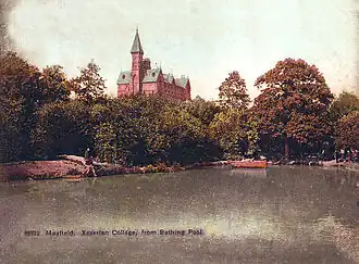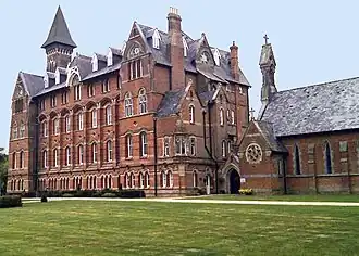 Mayfield College[1] is a defunct Roman Catholic boys' boarding school founded as the Holy Trinity Orphanage For Boys in 1865–1866 by the American-born[2] Dowager Duchess of Leeds, Louisa Catherine Caton, one mile from Mayfield, East Sussex. The main building and attached chapel were built in the Gothic style, primarily of red brick[3] and are Grade II listed,[4] having been designed by E. W. Pugin. After closure in 1999 both the main building and chapel were converted into luxury apartments[5] now collectively called Mayfield Grange. Officially opening in 1868 it was also known as the Xaverian Brothers School, St Xavier's College[6] and Xaverian College at various times. Mayfield College was built as one of a pair of orphanages at the Duchess's expense, the other originally known as St Michael's Orphanage for Girls in Bletchingley (Mark Cross), East Sussex, also designed by Pugin.[7]