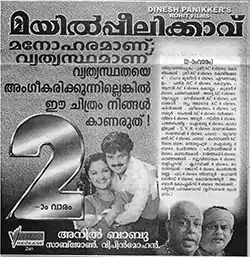 Mayilpeelikkavu (transl. Peacock-feather shrine) is a 1998 Indian Malayalam-language mystery thriller film directed by the Anil-Babu duo and starring Kunchacko Boban and Jomol. This film is about reincarnation and revenge.[1][2] The movie has many similarities with the 1991 American movie Dead Again. It was one of the first Indian movies to have a website.