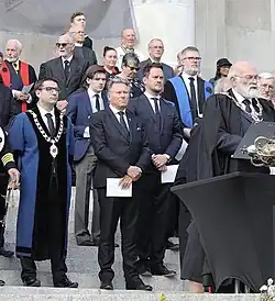 A plain black gown, similar to an academic gown is worn at times of national mourning, it was most recently worn in September 2022 by Lord Mayor Hugh Mason on the death of Queen Elizabeth II, having not been seen for 70 years.[5]