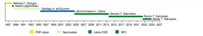 | 23 | Santiago A. de Guzman | 1988 | 1995 | Nacionalista | |