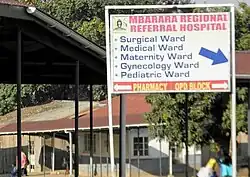 Mbarara Regional Referral Hospital (MRRH), also known as Mbarara Hospital or Mbarara University Teaching Hospital, is a government-owned healthcare facility located in Mbarara City, in the Western Region of Uganda. It serves as a referral center for the Ankole sub-region, neighboring districts and surrounding countries, including the Democratic Republic of Congo, Rwanda, Tanzania, and Burundi. The hospital provides specialized and super-specialized services to a catchment area of twelve districts, including the City of Mbarara.