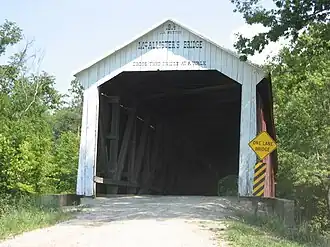 The McAllister Covered Bridge is a Burr Arch structure that was built by Joseph A. Britton and Son in 1914. It is 144 feet (44 m) long, 16 feet (4.9 m) wide, and 14 feet (4.3 m) high.[2][4] It is found in Adams Township, Parke County, Indiana, United States.