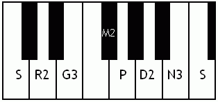 | Avarohanam | Ṡ N₃ D₂ P M₂ G₃ R₂ S |