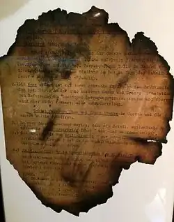 The Belgians decided to try tricking Reinberger into believing that the papers had been destroyed and give him the opportunity to pass this information on to the German authorities. There were two parts to the deception: in the first the Belgian investigators asked Reinberger what was in the plans and told him that he would be treated as a spy if he did not tell them. Later Reinberger testified saying: "From the way this question was asked, I realised he [the interrogator] could not have understood anything from the fragments of the documents he had seen."[3] The second part of the plan was to let Reinberger and Hoenmanns meet the German Air and Army Attachés, Wenninger and Rabe von Pappenheim, while their conversations were secretly recorded. During this meeting Reinberger informed Wenninger that he had managed to burn the papers enough to make them unreadable.[6] This act of deception was fairly successful, at least in the short term. After the meeting at the police station, Vicco von Bülow-Schwante, Germany's ambassador to Belgium, telegraphed his superiors: 'Major Reinberger has confirmed that he burnt the documents except for some pieces which are the size of the palm of his hand. Reinberger confirms that most of the documents which could not be destroyed appear to be unimportant.'[7] This appears to have convinced General Jodl. His diary for 13 January included the entry: "Report on conversation of Luftwaffe Attaché with the two airmen who made forced landing. Result: despatch case burnt for certain."[5]