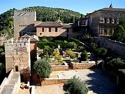 A meshwar section (known as the Mexuar in Spanish) was also part of the Nasrid Palaces in the Alhambra of Granada, Spain. It was composed of a main external entrance gate followed by two consecutive courtyards leading to a council chamber at its eastern end, all of which was separate from the emir's palaces (the Comares Palace the Court of the Lions) further east. A number of other chambers were arranged around the courtyards, with the first courtyard likely being used by the secretaries and officials of the state administration, including the chancery or diwan, while the second courtyard was used by the emir for official audiences. The first courtyard even had its own mosque.[2]: 269–272