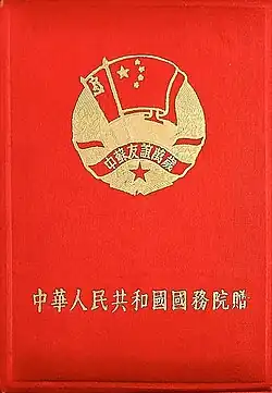 - ^ ""友谊奖"前身"中苏友谊万岁"奖章". history.sina.com.cn. Retrieved 2021-04-30.