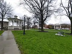 After the disastrous fire in 1870, much of the Medina Square, including the Town Hall and Engine House, was rebuilt under the supervision of onetime mayor and banker Harrison Gray Blake, who owned the Phoenix Building in the same city block. It took almost ten years to replace the buildings on Medina Square, hence their common Victorian style. Medina Square is now a recognized historic district, covering a nine-block area surrounding Uptown Park. The Community Design Committee and the Historic Preservation Board preserve the city's historic look and feel.[17]