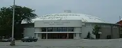 The George V. Meehan Auditorium is a 3,059-seat hockey arena, in Providence, Rhode Island. The arena opened in 1961 and was dedicated on January 6, 1962. It is named for George V. Meehan, the benefactor of the arena, which he hoped would "service and promote" the Brown Bears ice hockey program, which now belongs to the Ivy and ECAC Hockey leagues. It is recognizable for its large white domed roof, and is located on the highest corner (Hope Street and Lloyd Avenue) of Brown's main athletic complex on College Hill in Providence.