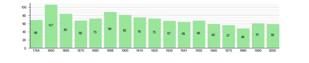 As of 2010, children and teenagers (0–19 years old) make up 5.7% of the population, while adults (20–64 years old) make up 81.1% and seniors (over 64 years old) make up 13.2%.[11] As of 2000, there were 29 people who were single and never married in the municipality. There were 24 married individuals, 3 widows or widowers and 3 individuals who are divorced.[12]