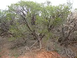 This melaleuca occurs in three disjunct areas in the Kalbarri, Wongan Hills and Jurien Bay districts[2][3] in the Avon Wheatbelt and Geraldton Sandplains biogeographic regions.[6] where it grows in gravelly loam in swampy areas, including those that are affected by salt.[2][6]