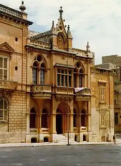 Traces of Siculo-Norman architecture can still be found in Malta's ancient capital of Mdina and in Vittoriosa, most notably in the Palaces of the Santa Sofia, Gatto Murina, Inguanez and Falzon families.[33]