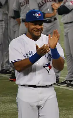 Cabrera signed a two-year contract for $16 million with the Toronto Blue Jays on November 19, 2012.[53][54] In a game against the Detroit Tigers on April 9, 2013, Cabrera recorded his 1,000th career hit, a single off starter Aníbal Sánchez.[55] Cabrera battled a sore hamstring and quadriceps muscle through the first two months of the regular season, but the injuries did not warrant time on the disabled list.[56] Cabrera was occasionally removed from games in the later innings to rest his legs.