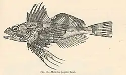 - ^ a b Tokranov, AM (2014). "Some features of biology of butterfly sculpin Melletes papilio (Cottidae) in the pre-Kamchatka waters of the Sea of Okhotsk". Journal of Ichthyology. 54 (8): 558–65. doi:10.1134/S0032945214050117. S2CID 255279240.