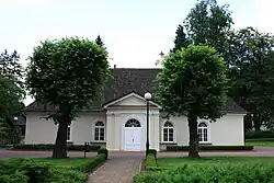General Dominik Dziewanowski's Szafarnia manor (with Chopin's bust in front) where Chopin vacationed in 1824 and 1825; now a Chopin Center -