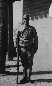 The rank system of the Inner Mongolian Army was modeled on those of the Imperial Japanese Army; however, instead of maroon bands on the insignia, the Mongols used blue.[10] The rank of general was held by Prince De Wang as commander-in-chief and Li Shouxin as the commander of the army.[11]